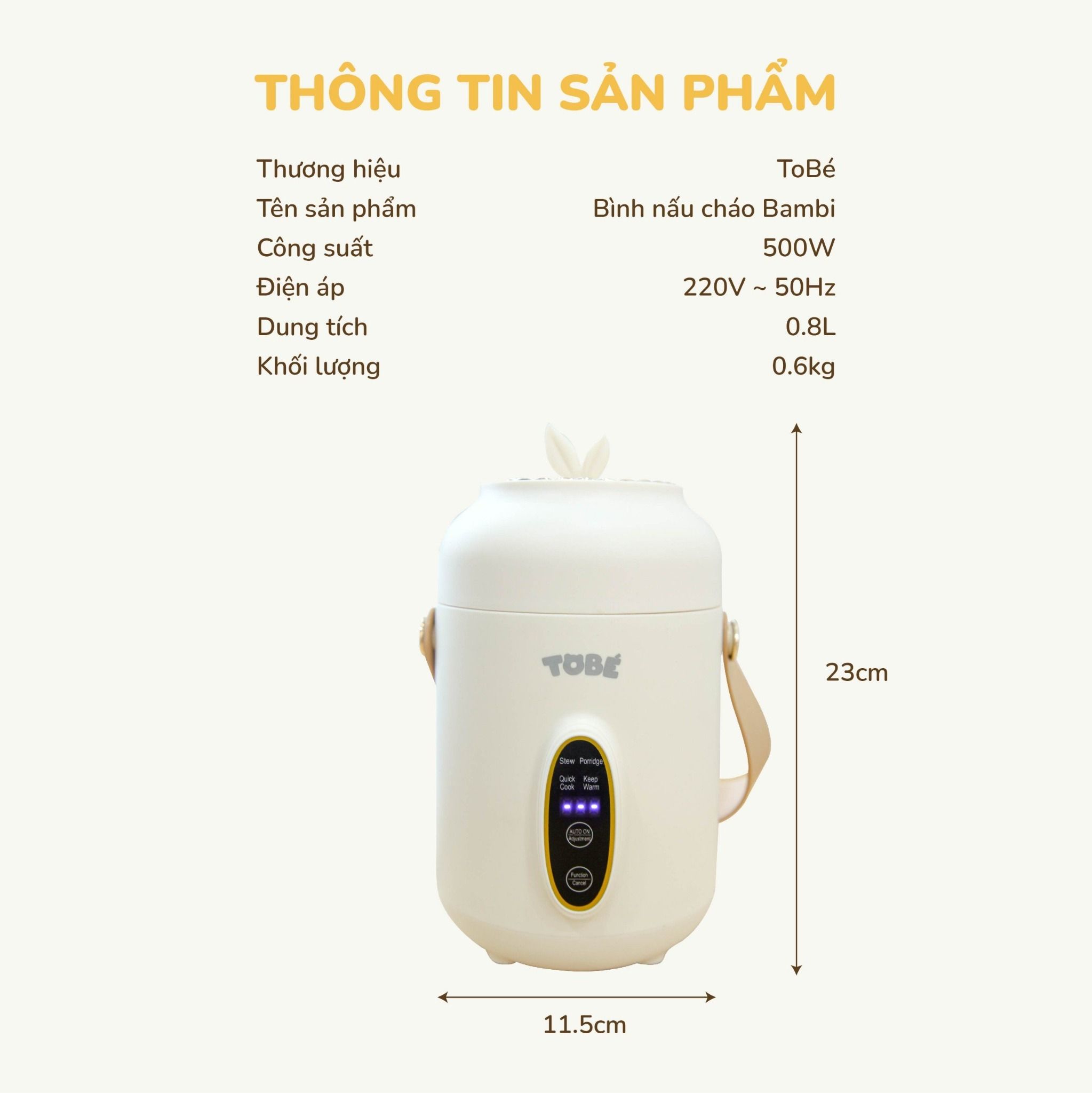 ✨ Dung tích nồi 0.8L phù hợp với nhu cầu ăn của bé.