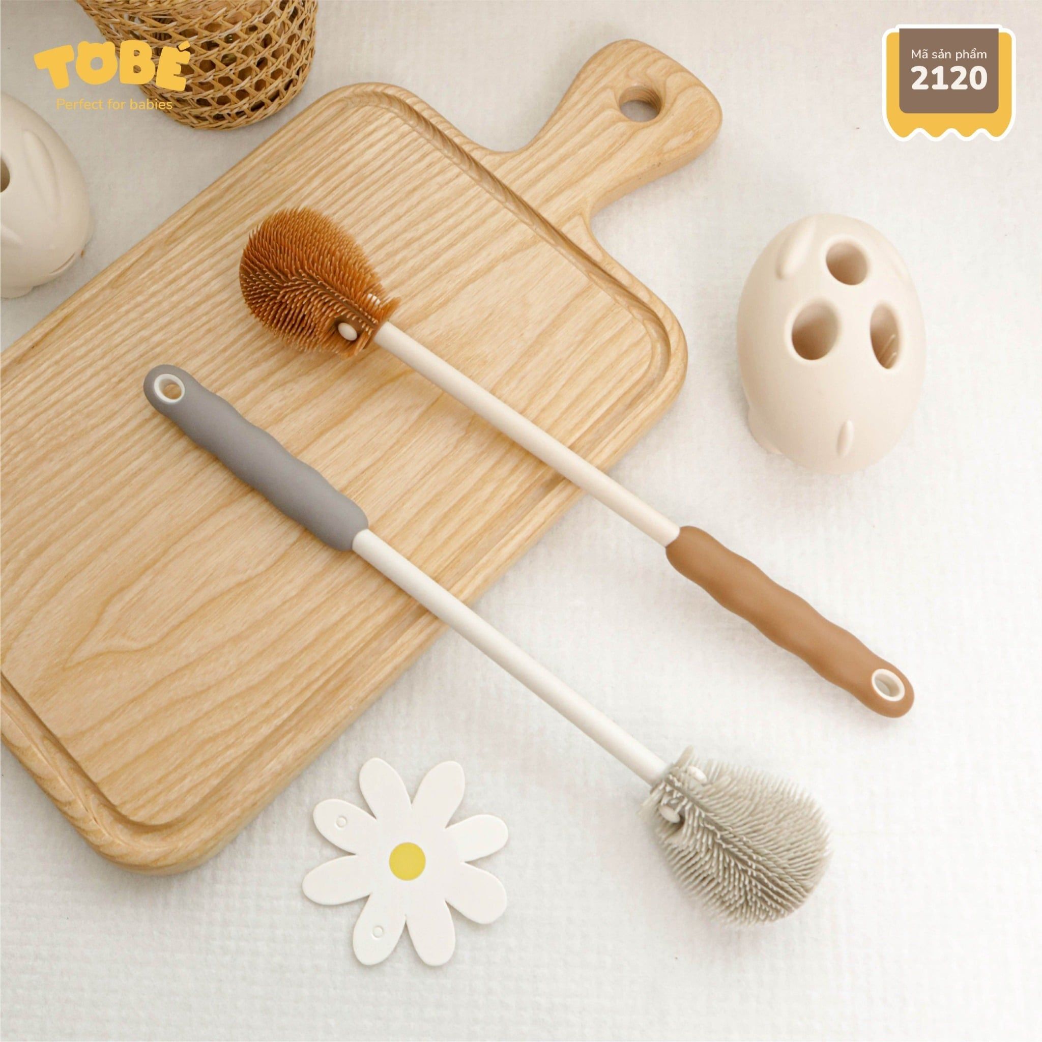 🫛Đầu cọ Silicone mềm mại, uốn cong 90° để làm sạch mọi ngóc ngách của bình sữa.