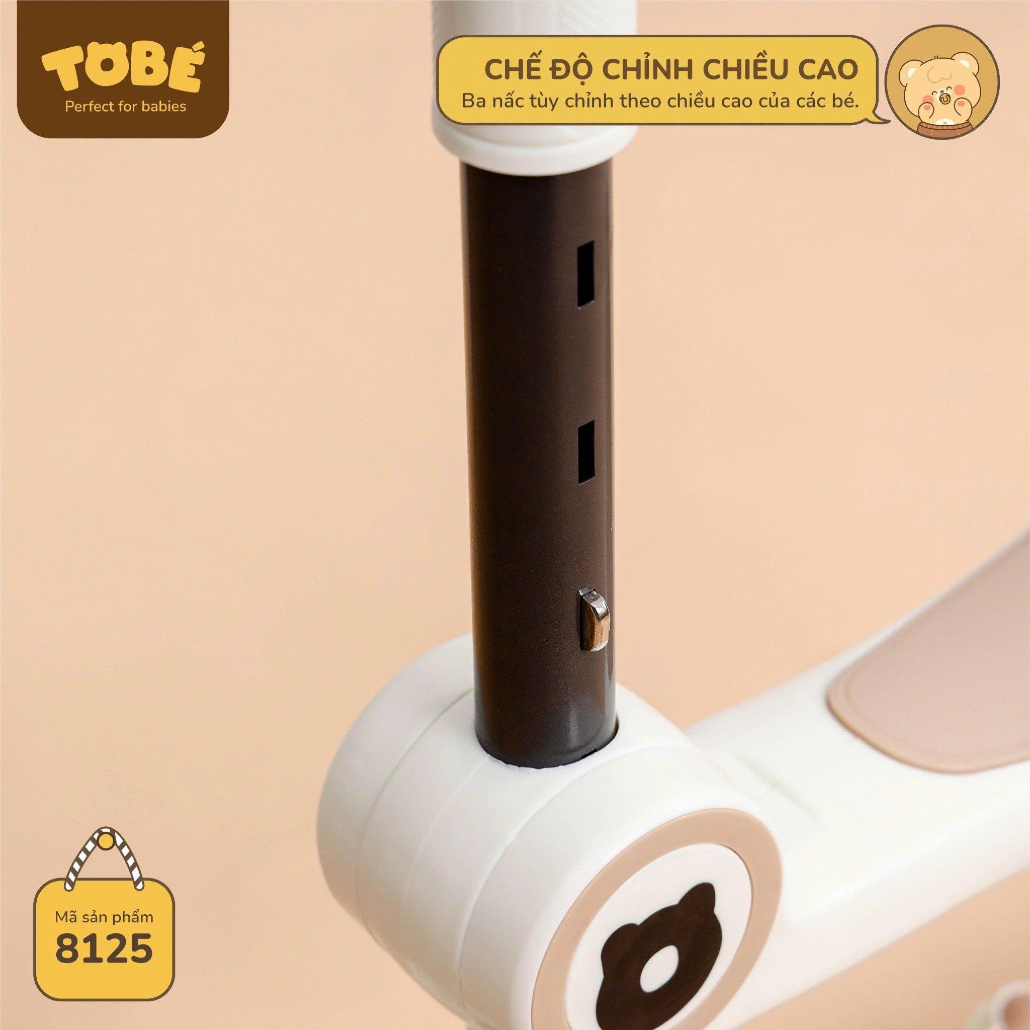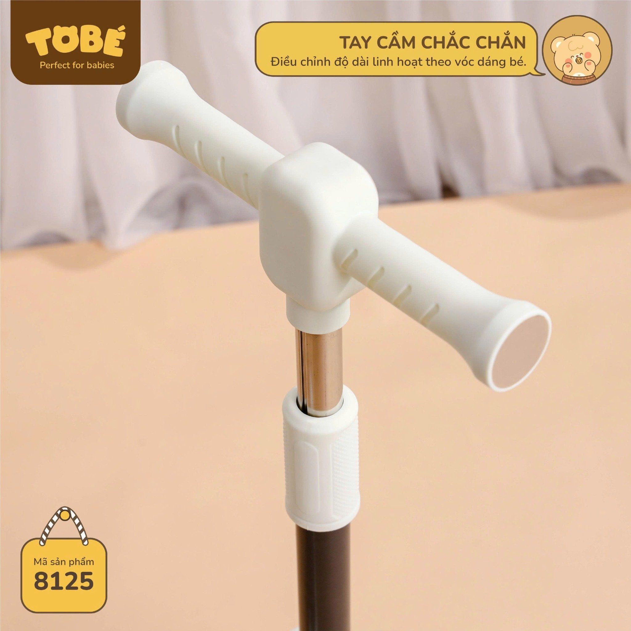 👼🏻Tay cầm chắc chắn, có thể điều chỉnh linh hoạt theo chiều cao của bé.